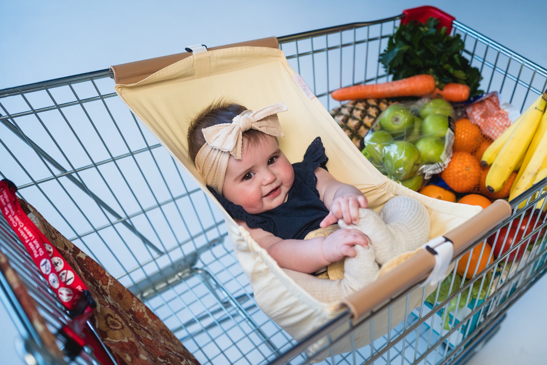 TrollyBaby is the unique solution you are looking for to stop using bulky baby carriers or having to push a pram and hold a basket when shopping.
